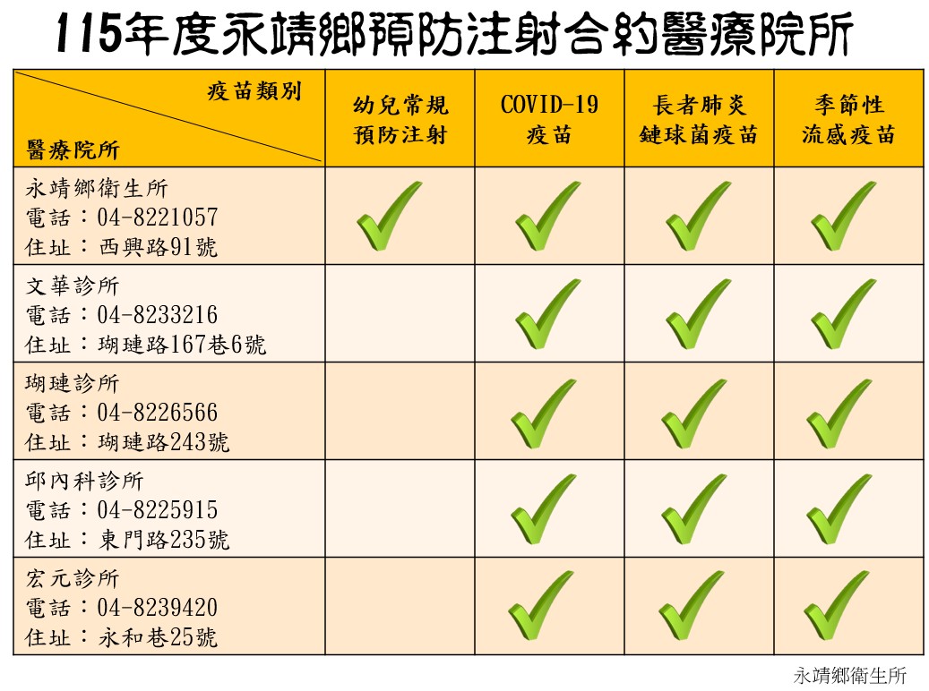 本年度永靖鄉預防注射合約醫療院所